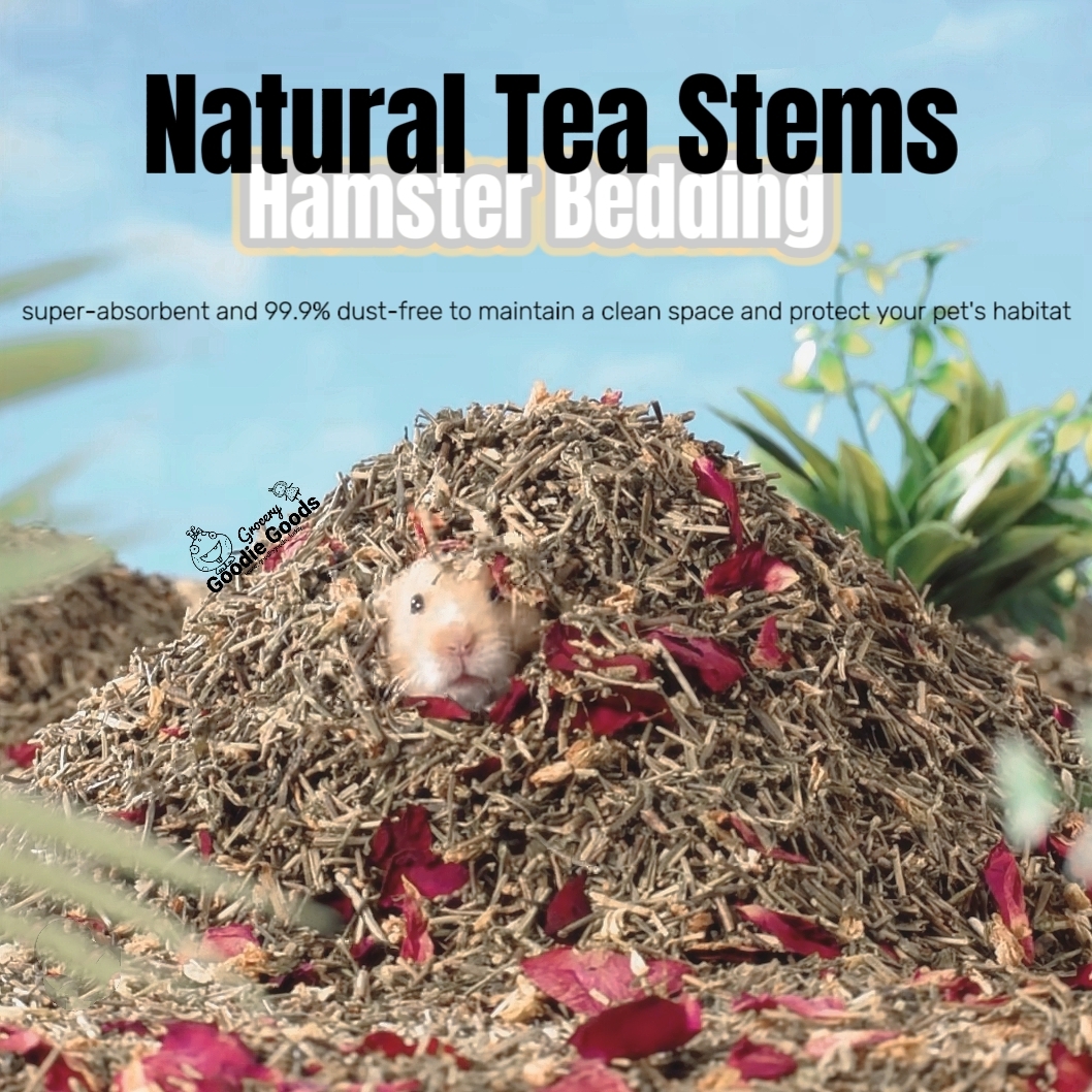 倉鼠墊料天然茶莖 1 公斤/2.2 磅,小動物墊料棲息地裝飾氣味控制,適用於沙鼠、小鼠、八齒鼠、天竺鼠或其他小型寵物