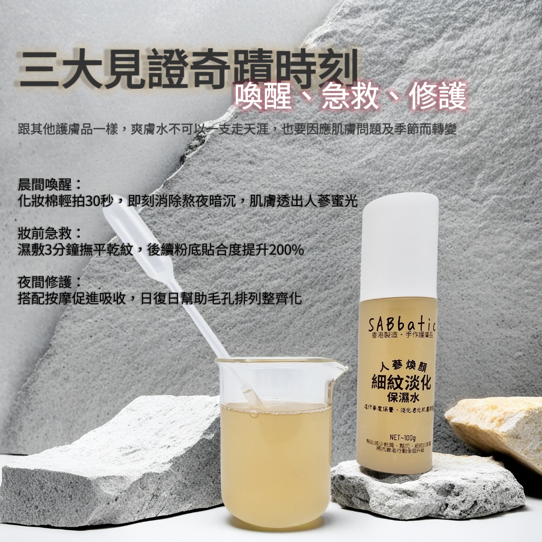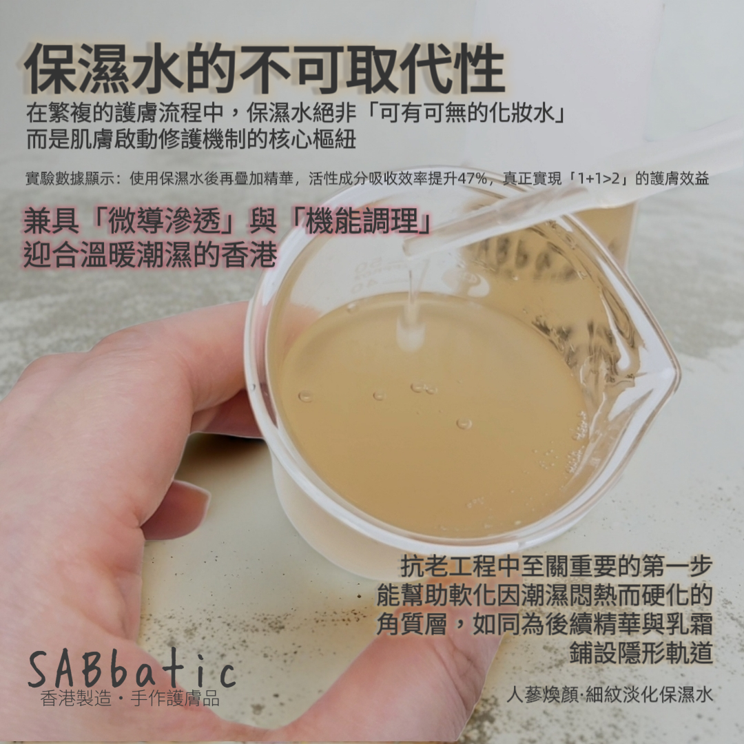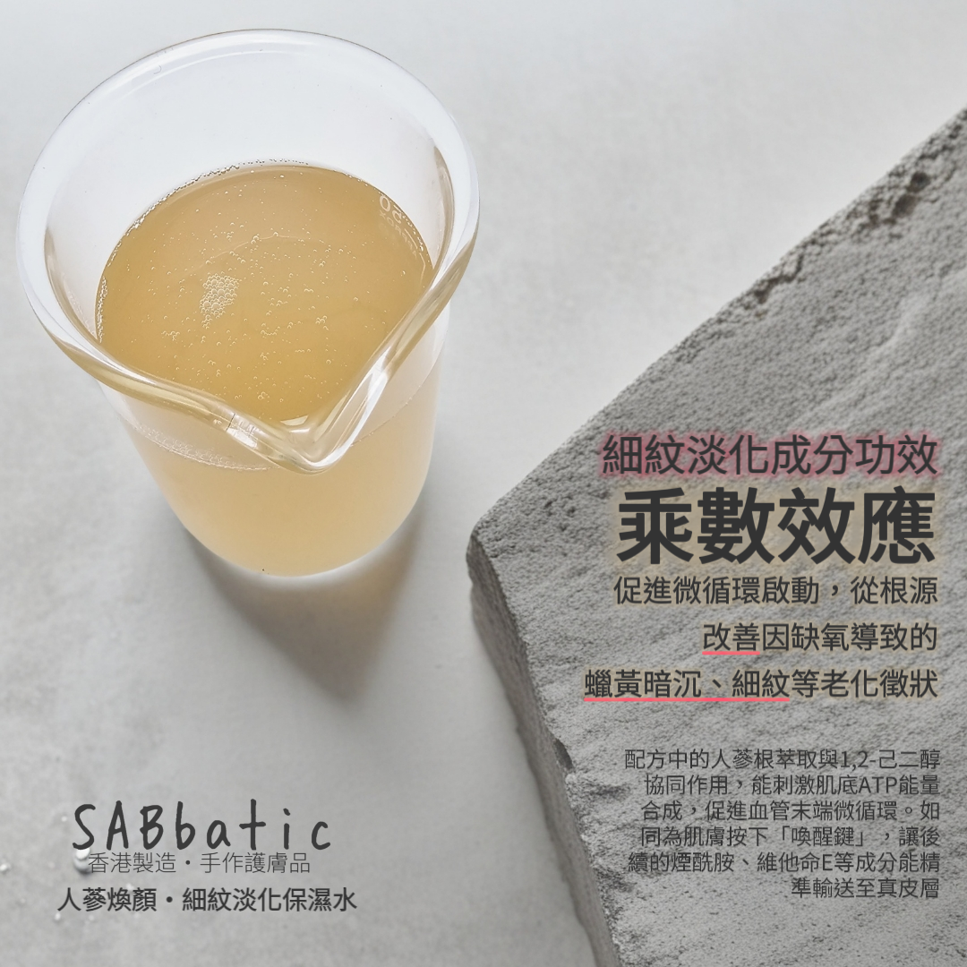 觸感透薄,清新香味,適合香港潮濕氣候使用。配合煙酰胺及仙人掌萃取於配方內,加强細紋淡化功效之餘,更幫助收細毛孔、改善膚色不均暗沉等問題。成分提升微循環,增強皮膚營養及彈性,使細胞得到新生,提升肌膚的更生機能,進行蔘度保養,淡化老化肌膚問題,幫助減少乾扁、黯沉、細紋的影響,將抗衰老行動全面升級。
