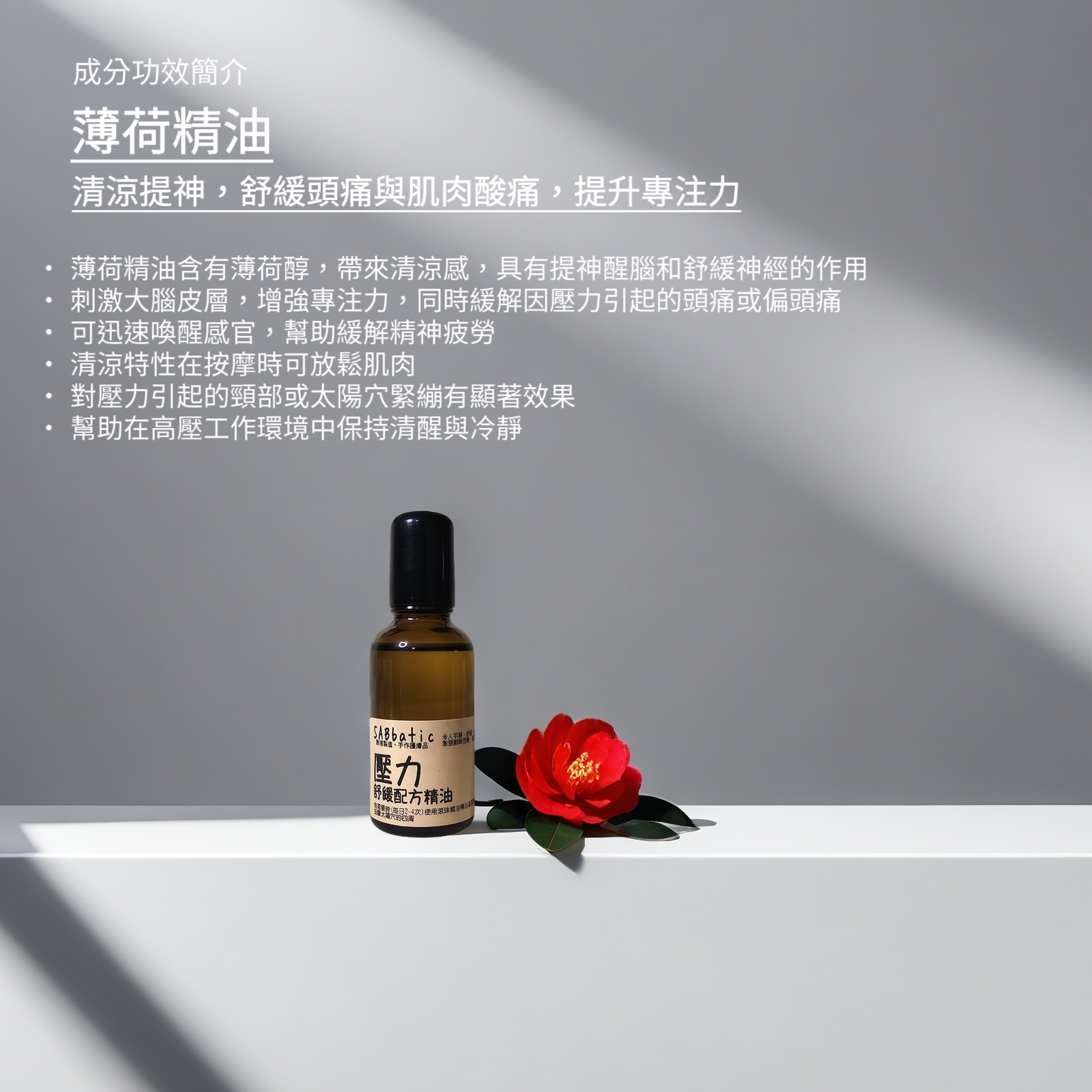 - 刺激大腦皮層,增強專注力,同時緩解因壓力引起的頭痛或偏頭痛