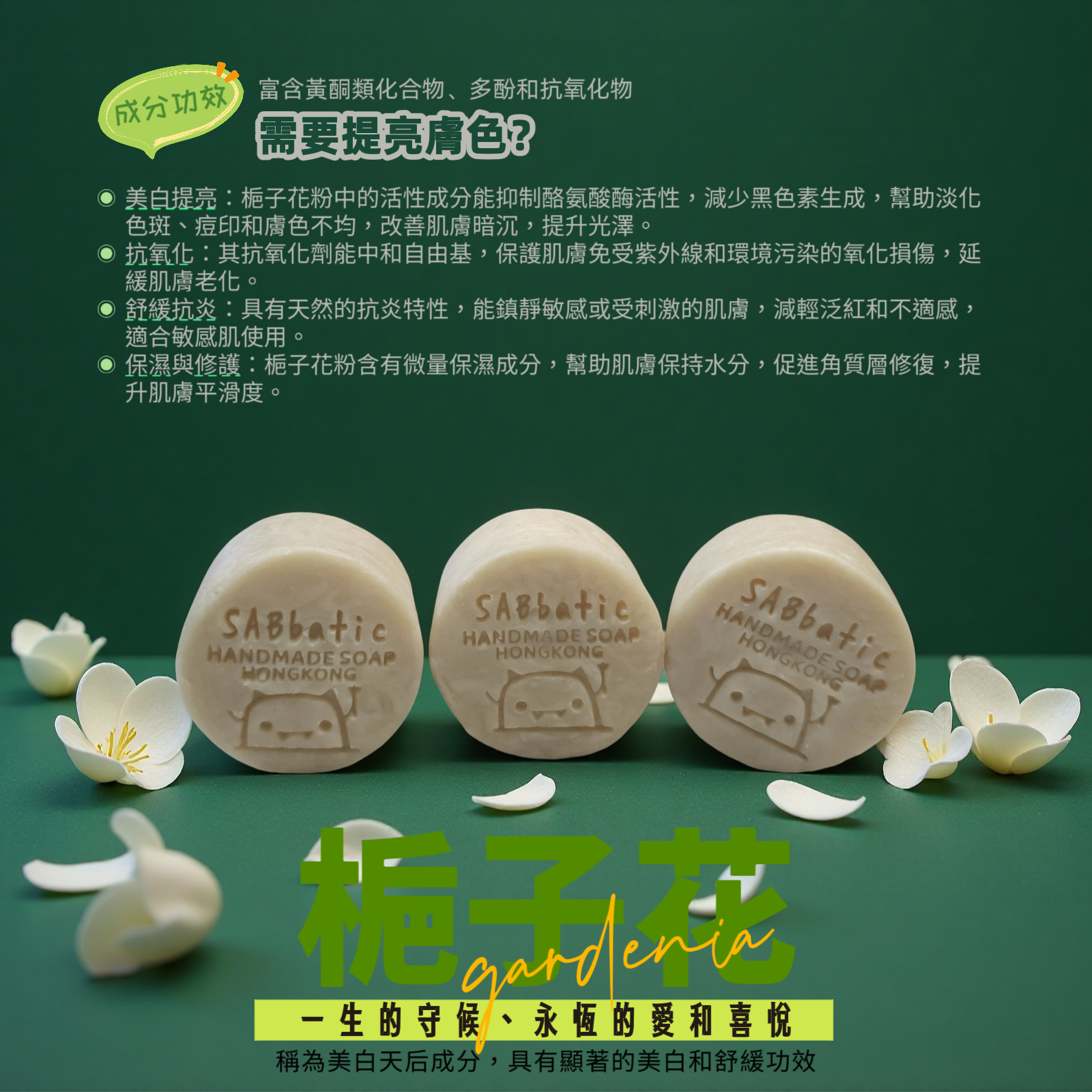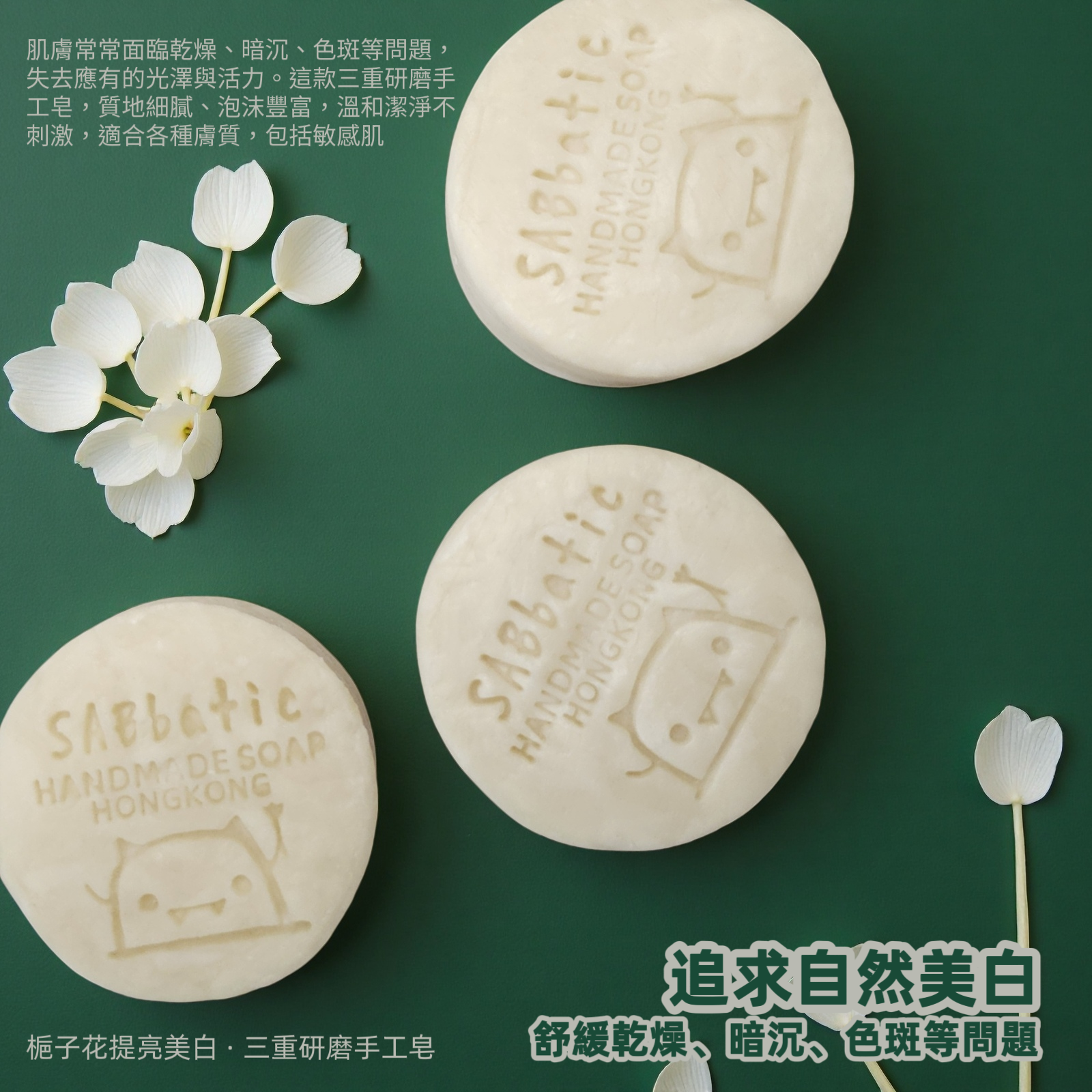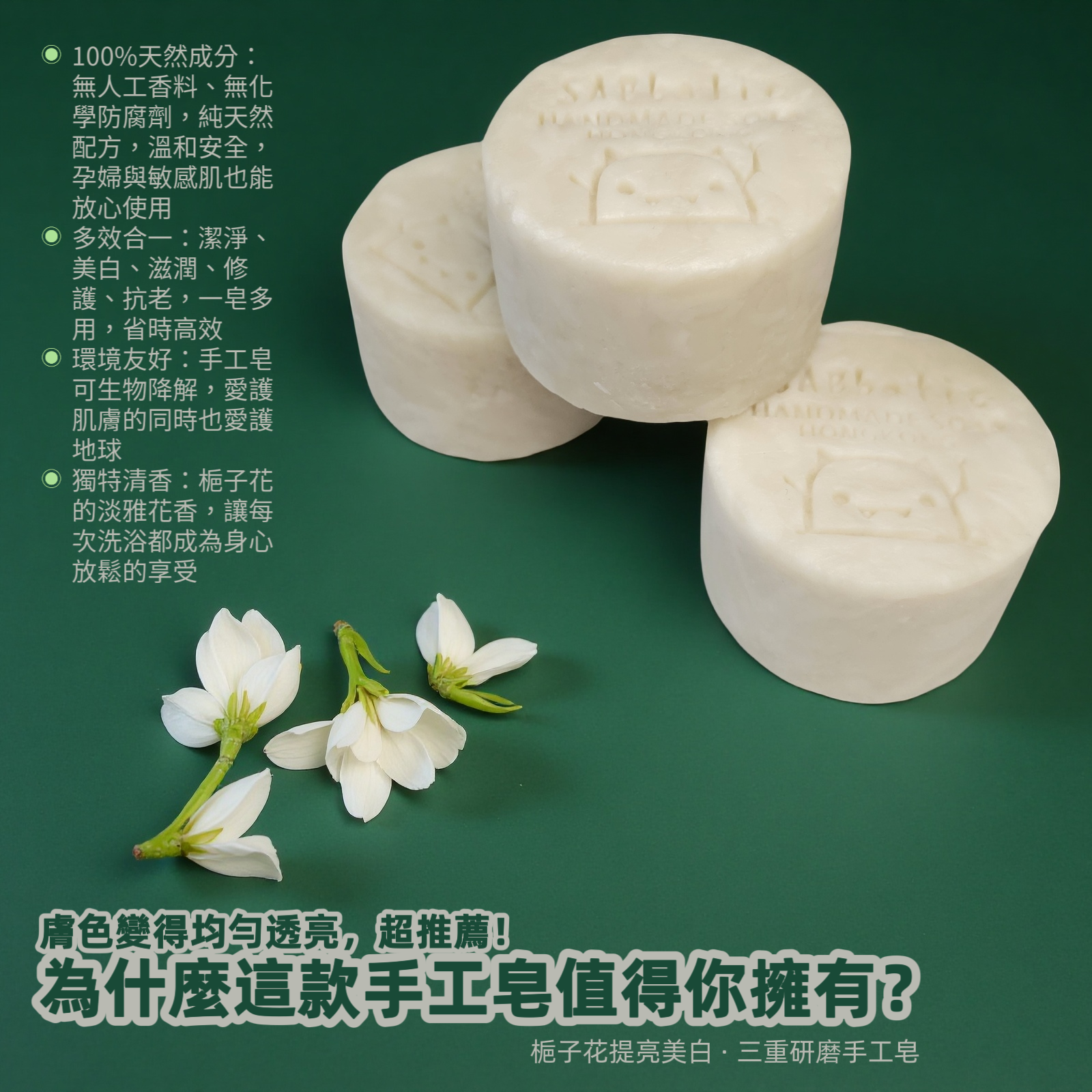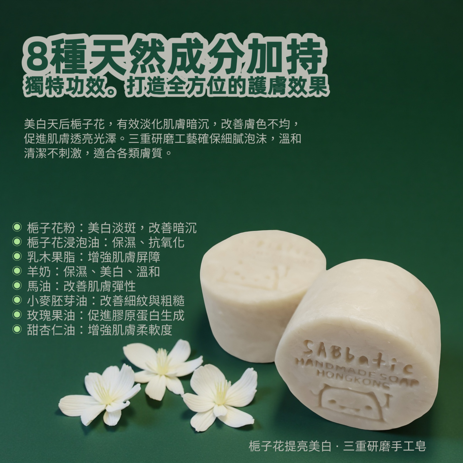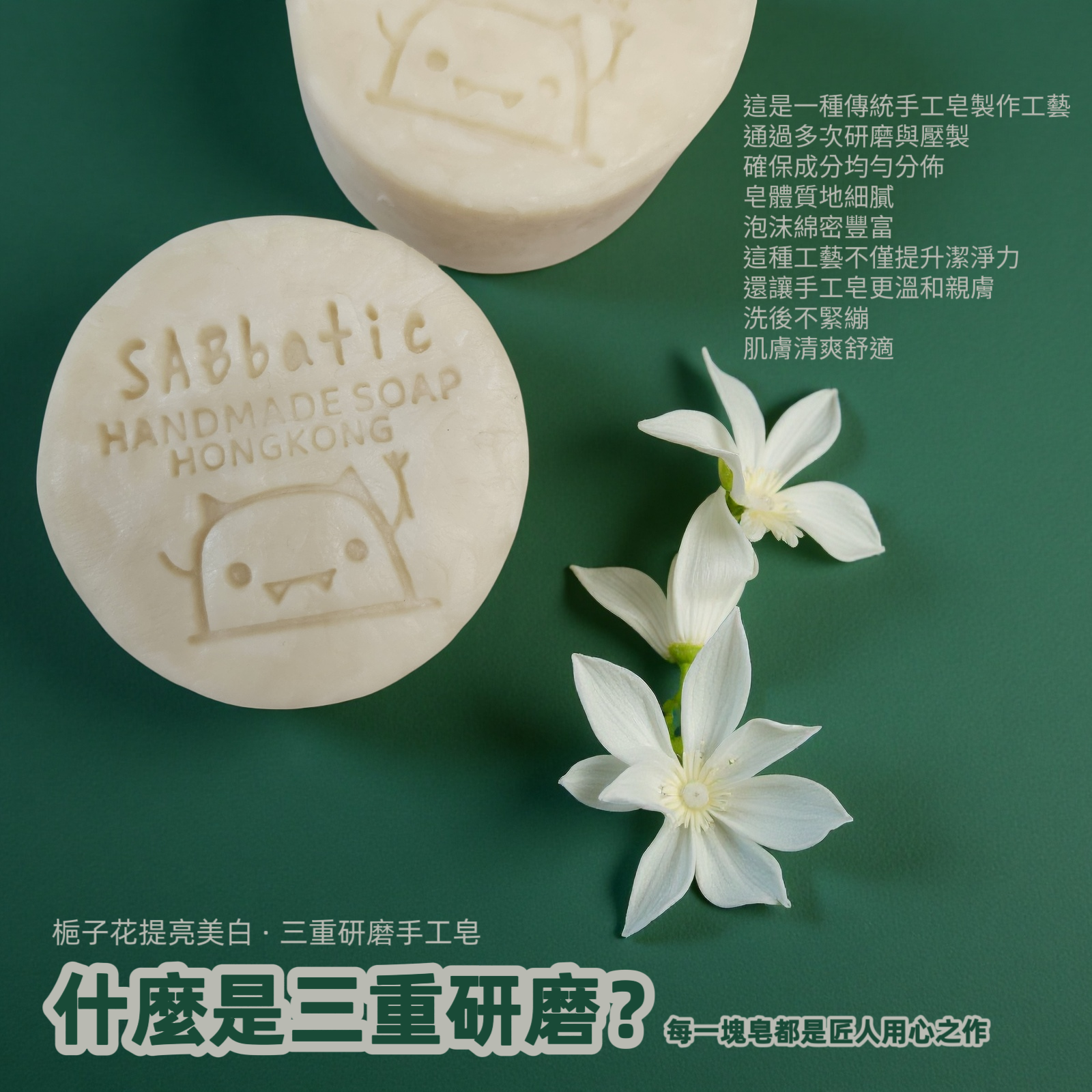 梔子花提亮美白 · 三重研磨手工皂