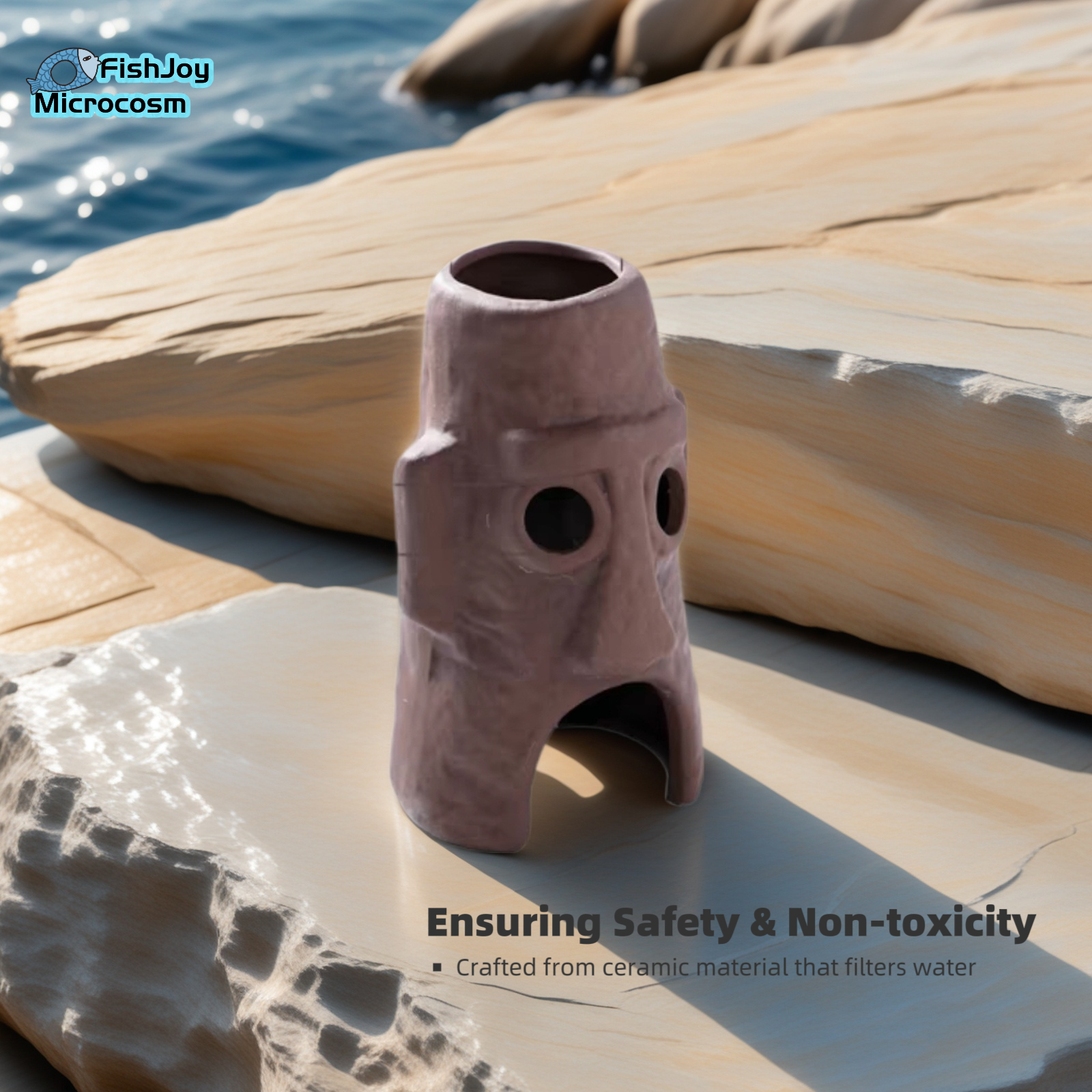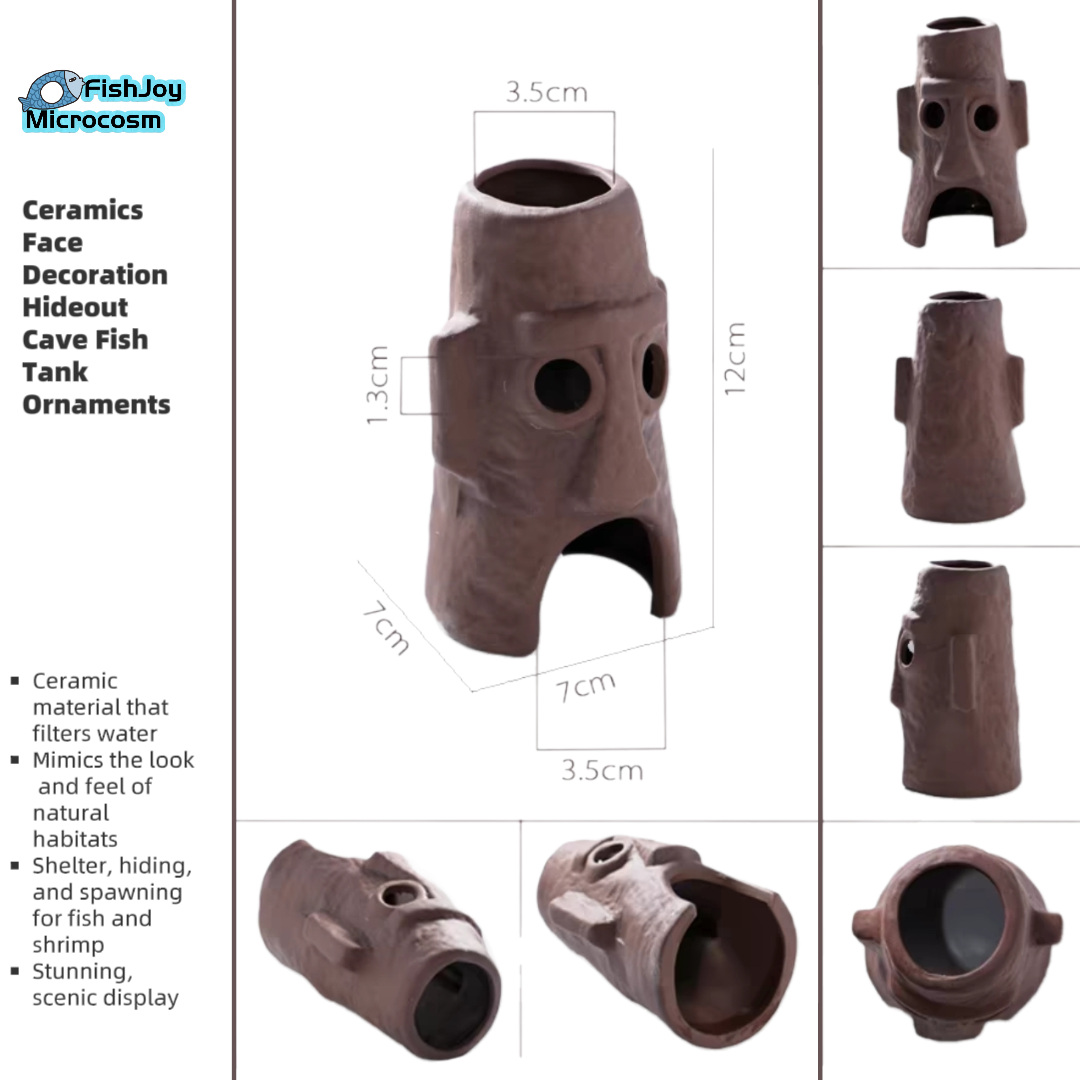 Aquarium Ceramics Face Decoration Hideout Cave Fish Tank Ornaments for Small Fish Shrimps Breeding Hiding Spots 水族箱陶瓷人臉裝飾洞穴魚缸擺件,適合小型魚蝦繁殖與藏身