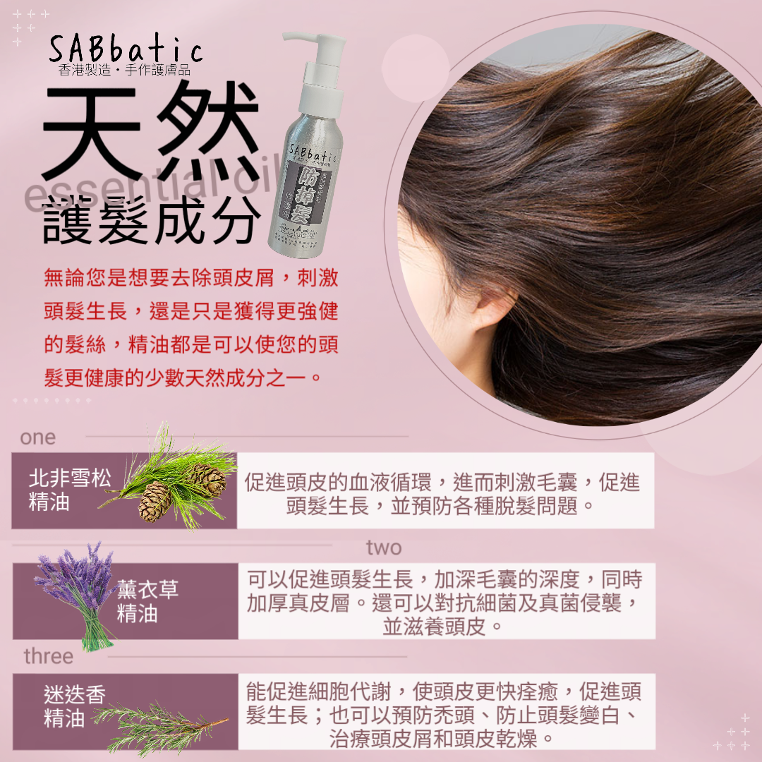 2.薰衣草精油:薰衣草精油可以促進頭髮生長,加深毛囊的深度,同時加厚真皮層。不但如此,薰衣草精油還有抗菌作用,可以用來對抗細菌及真菌侵襲,並滋養頭皮、治療肌膚和頭髮乾燥,更可以打造舒適及減壓的氛圍,有助於預防脫髮。