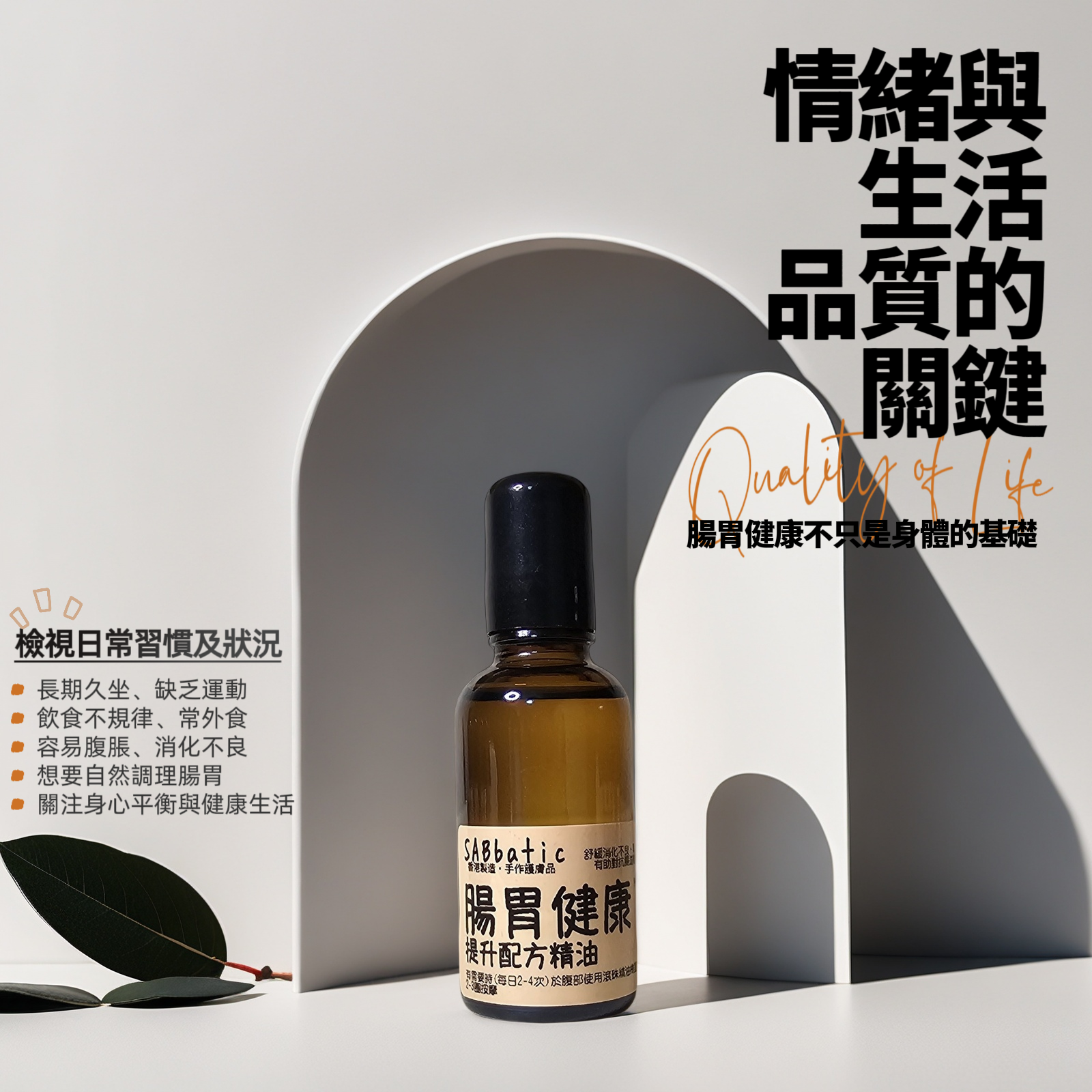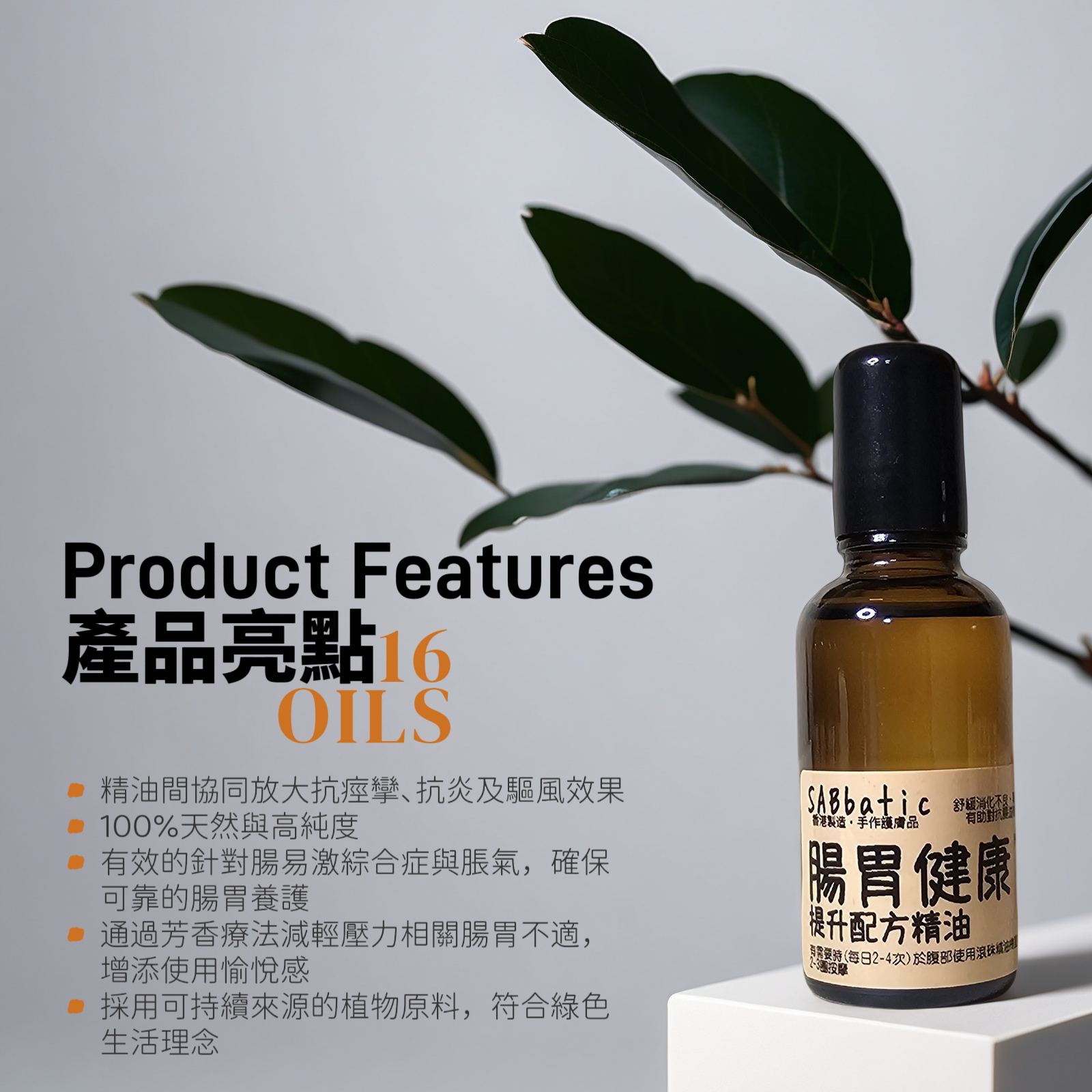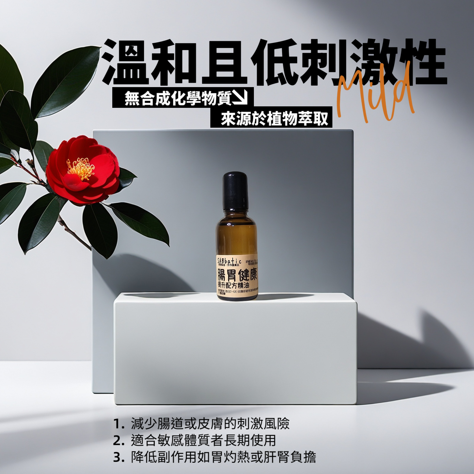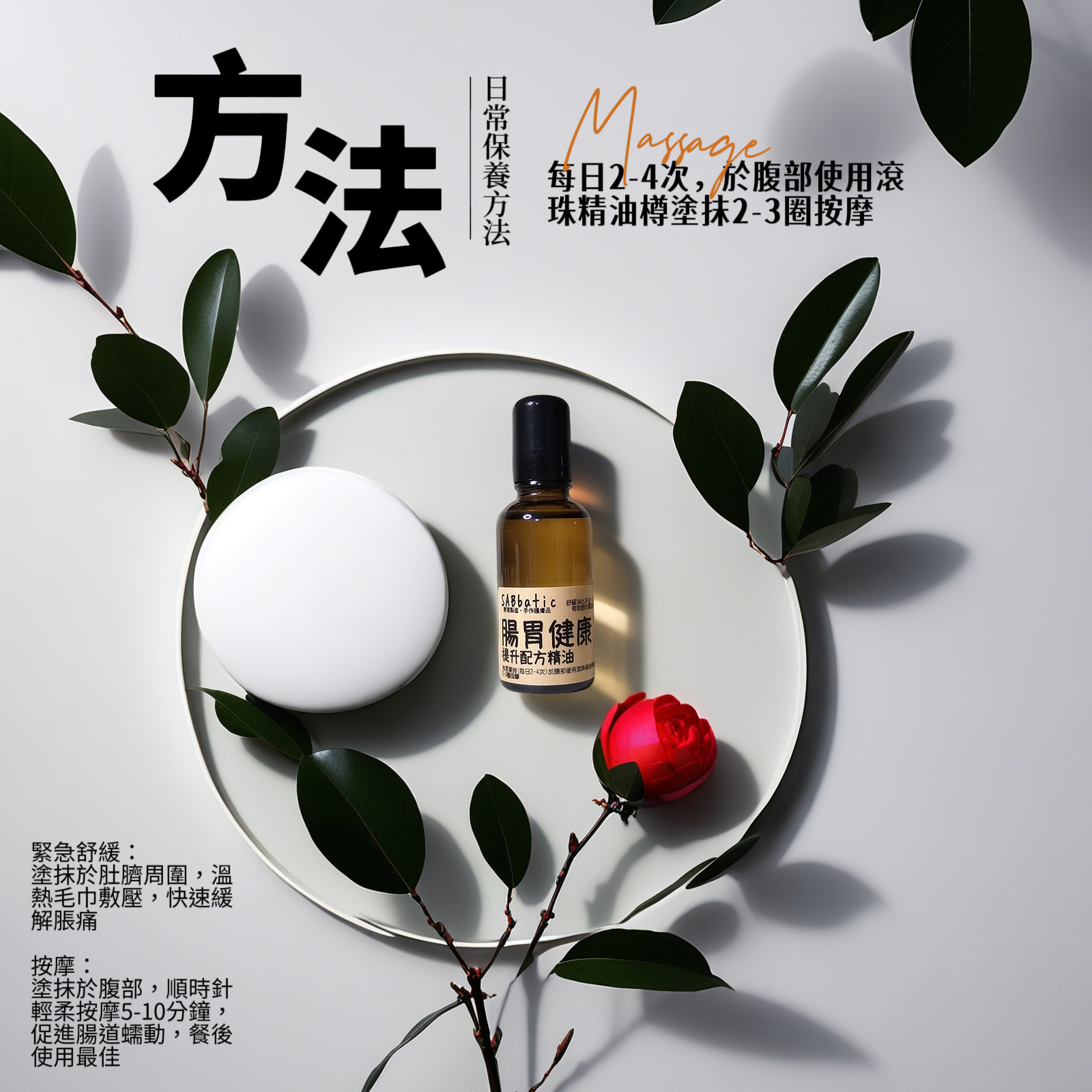 協同作用:透過精油與基礎油的協同作用,全面支持腸胃健康。