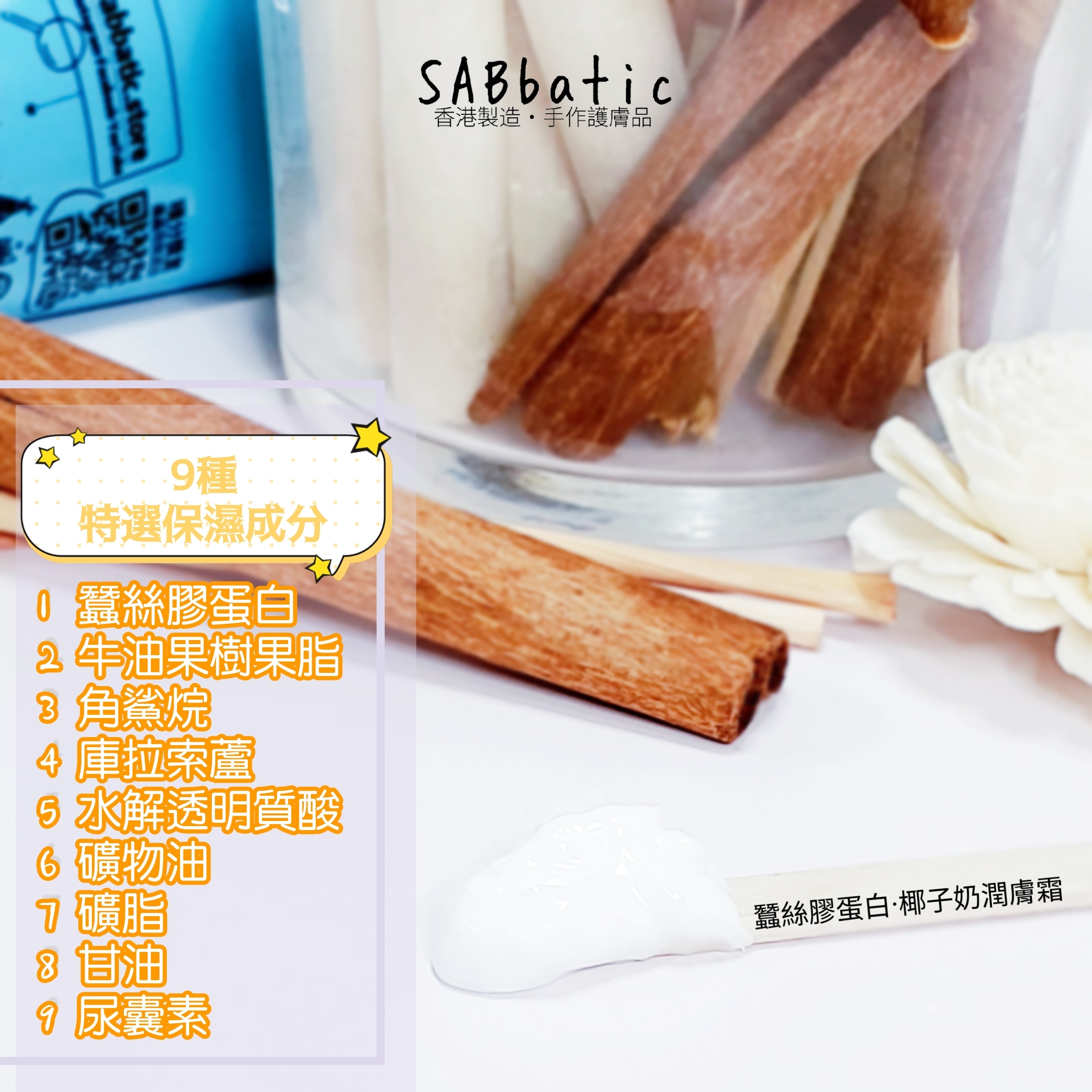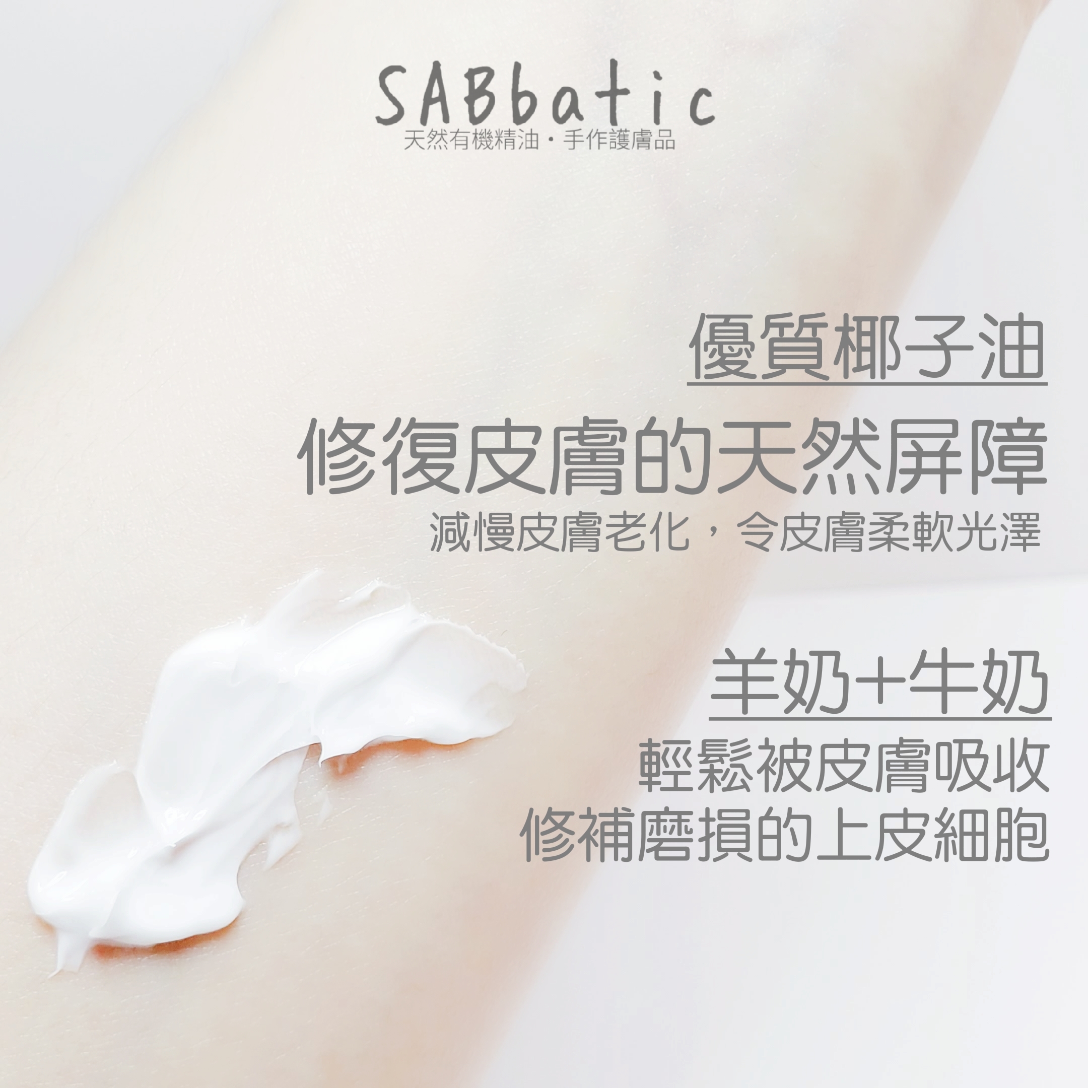 椰子油、羊奶萃取、牛奶萃取、 蠶絲膠蛋白、牛油果樹果脂、角鯊烷、庫拉索蘆薈萃取、水解透明質酸、甘油、礦物油、礦脂、 尿囊素、卡波姆、EDTA二鈉、聚二甲基硅氧烷、鯨蠟硬脂醇、甘油硬脂酸酯