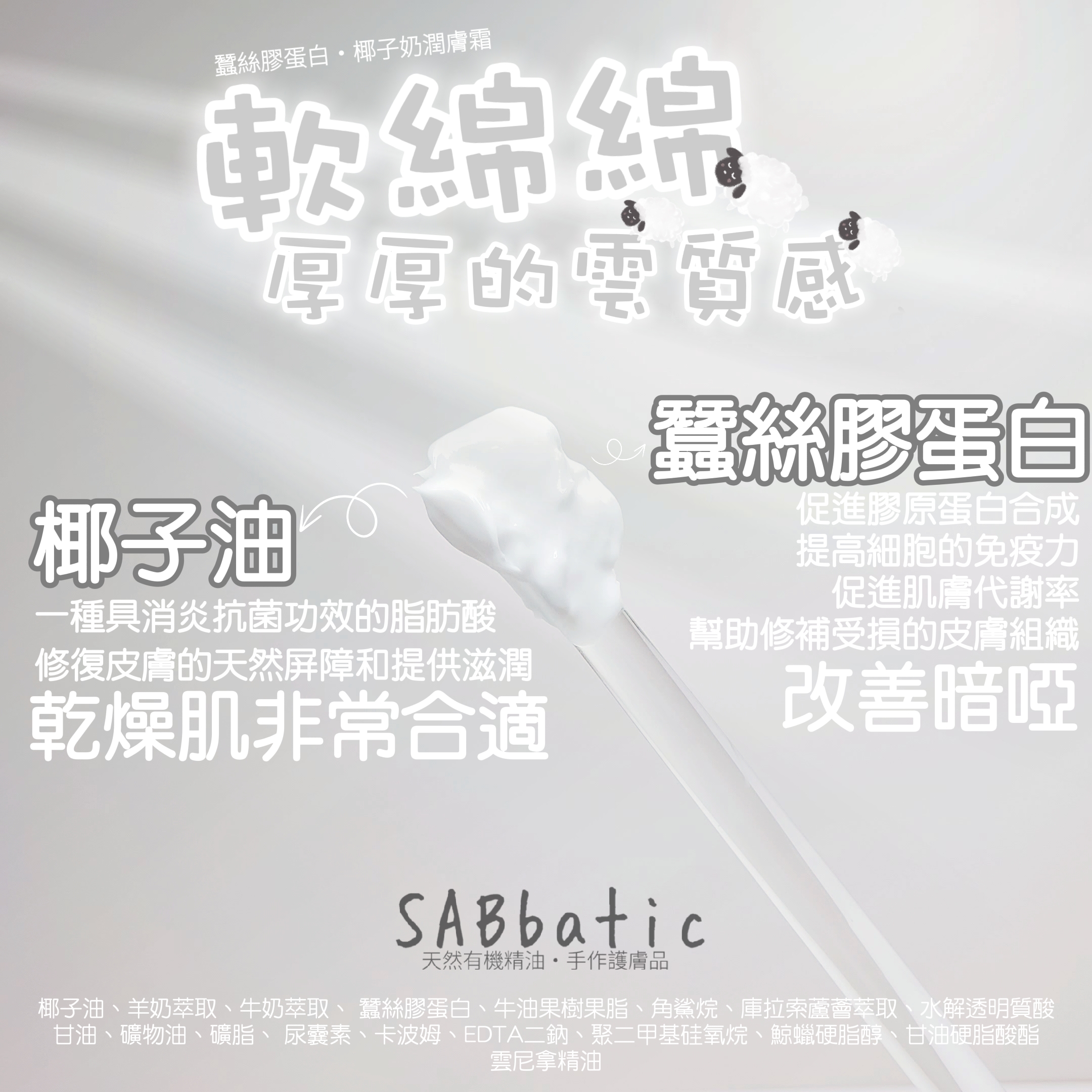 吸收快,沒有油膩感停留於皮膚表面。淡淡天然椰子清香。軟綿綿,雲感厚膏霜質地。
