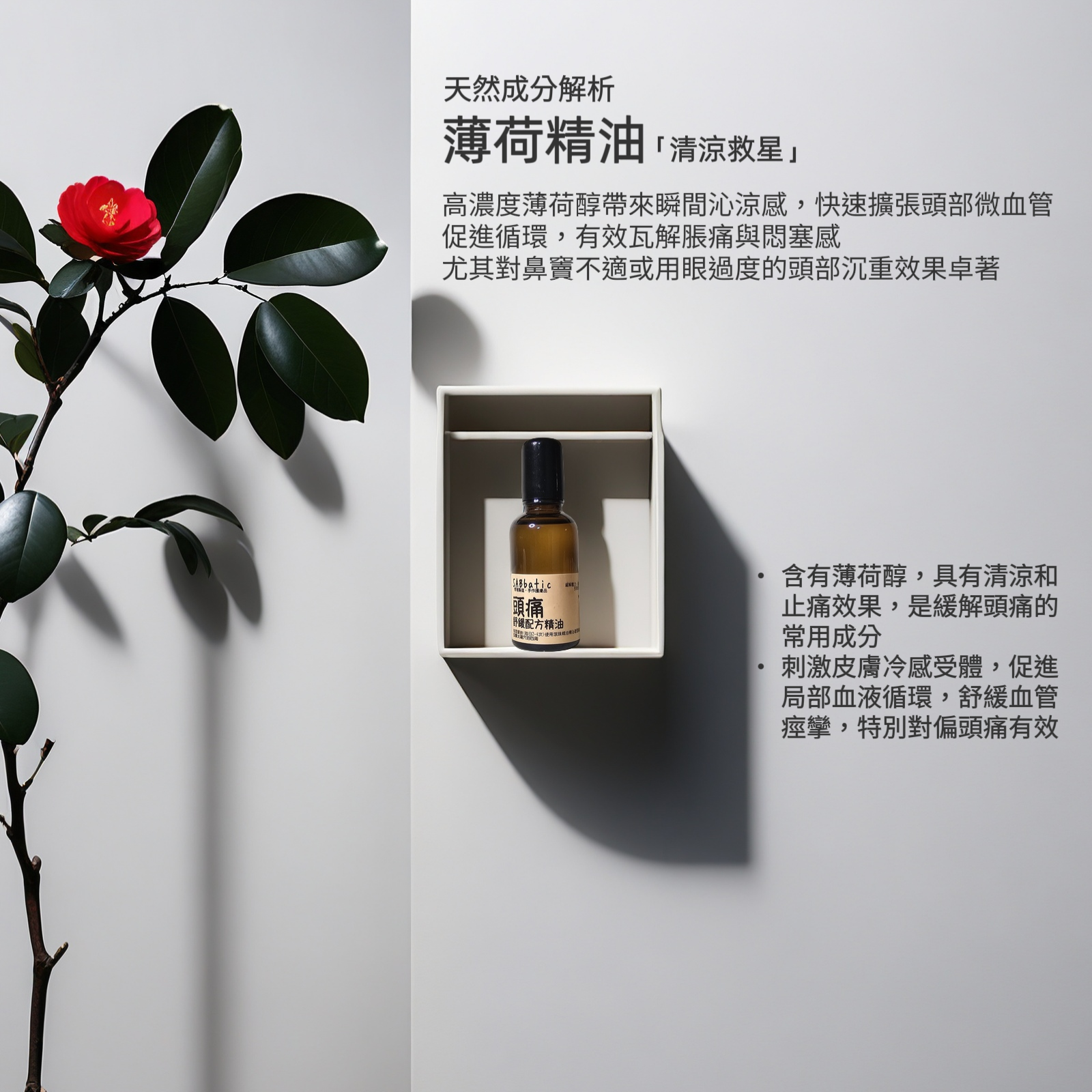- 含有薄荷醇,具有清涼和止痛效果,是緩解頭痛的常用成分