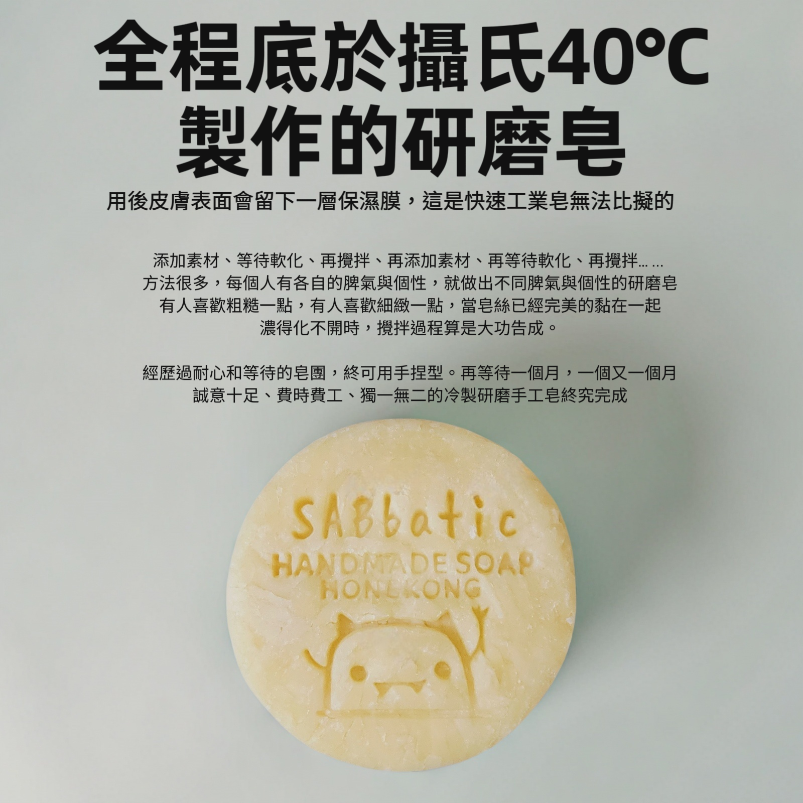 簡單總結,全程底於攝氏40°C製作的研磨皂,它就是進一步去提升皂的品質。