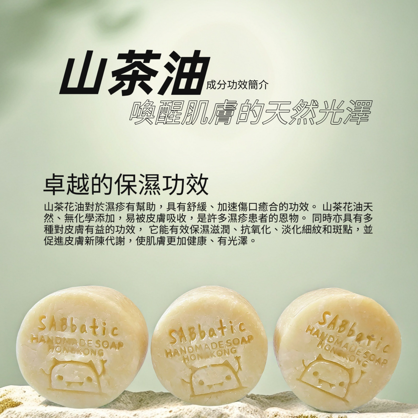 山茶油:山茶花油對於濕疹有幫助,具有舒緩、加速傷口癒合的功效。 山茶花油天然、無化學添加,易被皮膚吸收,是許多濕疹患者的恩物。 同時亦具有多種對皮膚有益的功效, 它能有效保濕滋潤、抗氧化、淡化細紋和斑點,並促進皮膚新陳代謝,使肌膚更加健康、有光澤。